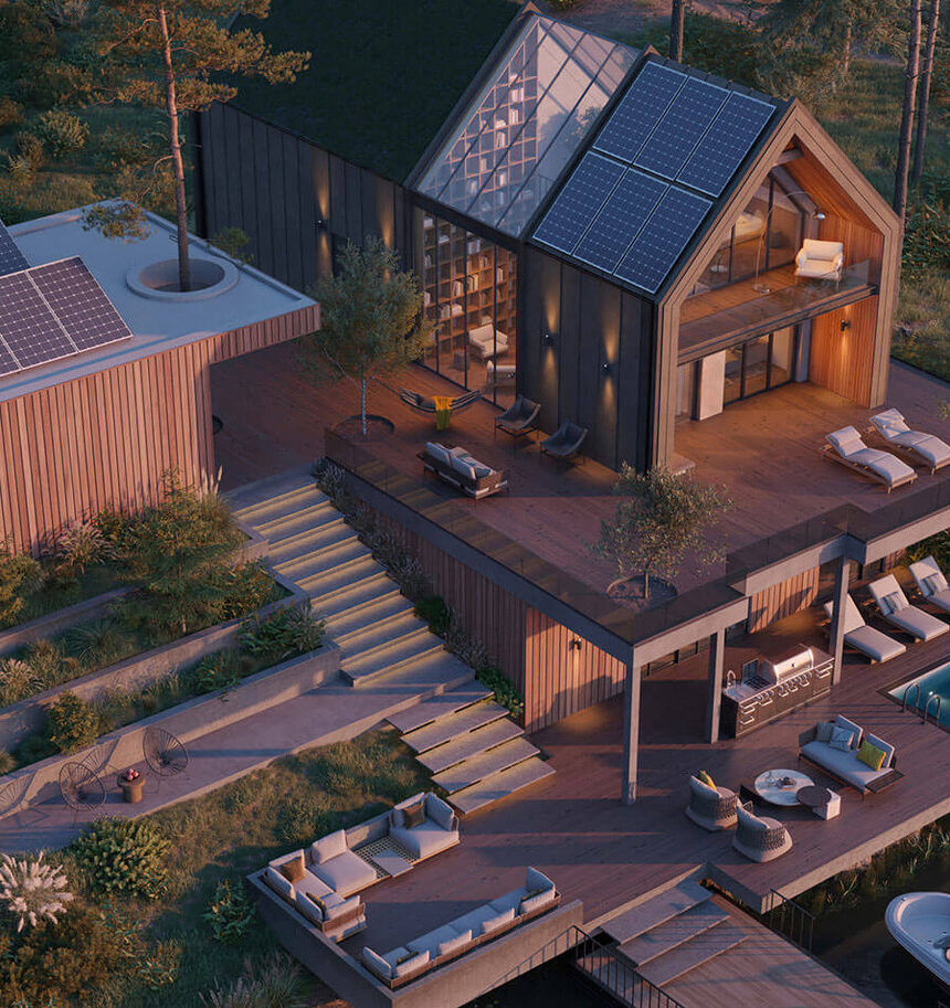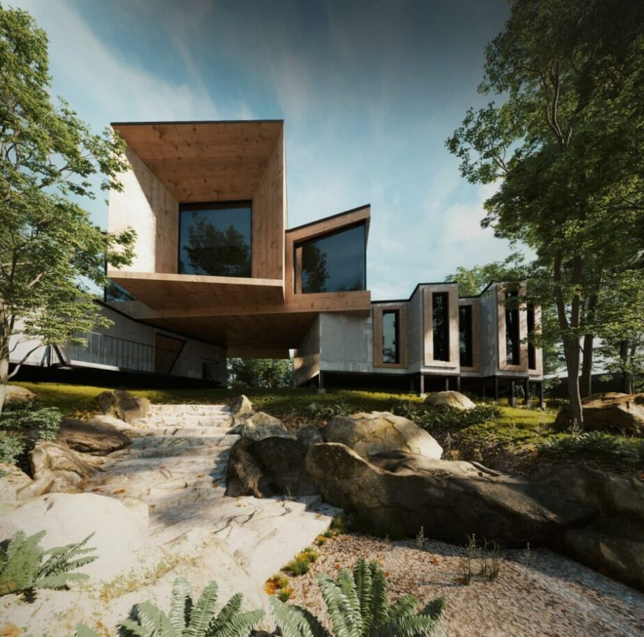 Eco-friendly villas surrounded by greenery and peaceful landscapes.